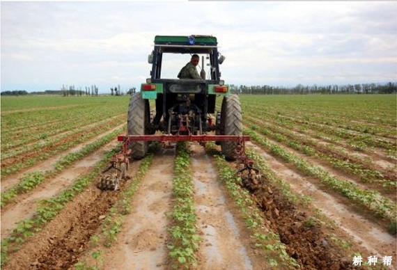露地直播的棉花苗期尽早中耕非常重要,一方面可提高地温,促进棉苗生长,另一方面可防止棉花苗病的发生,特别是在春季多雨的年份,更为重要。苗期中耕不是次数越多越好,要讲究时效。为了防苗病发生、促使棉苗健壮生长,在棉花出苗后要尽早中耕松土,特别是要把靠近棉株四周(直径3~4厘米)的土壤活起来,深度略深于播种深度。行间中耕可不必像株间中耕那么迫切,既可结合株间中耕同时进行,也可稍微拖后,但深度应达到6~10厘米。以后,只要保证棉田土壤无板结、田间无杂草就可以了。但雨后要及时中耕,及时破除土表的板结层,并尽早将棉棵四周的土扒天,以利于散墒,防止苗病。