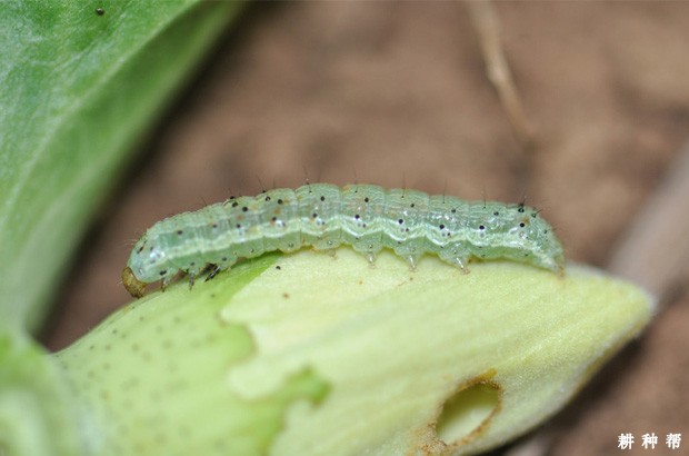 药剂可用:Bt乳剂(100亿活孢子/mm)200~300倍液、或棉铃虫核型多角体病毒悬浮剂(20亿个多角体病毒/mm)1000倍液、或1.8%阿维菌素乳油3000倍液、或1.5%阿维菌素乳油500倍液、或4.5%高效