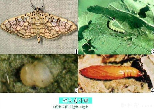 棉大卷叶螟又叫棉卷叶螟、棉大卷叶虫、裹叶虫、包叶虫、叶包虫、棉野螟蛾、棉卷叶野螟、青虫子。在国内除西北内陆棉区外,其他棉区均有发生。以淮河以南,特别是长江流域发生较多。受害轻的棉铃过早吐絮,棉籽和纤维不能充分成熟,受害重的棉叶全被吃光,仅留茎枝,致使棉株梢头不能开花结铃,甚至棉花整株枯死。