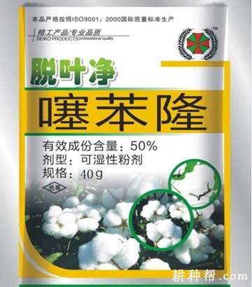 注意事项:噻苯隆较磷酸盐类脱叶剂起效慢,在低温下特别明显,因此日均温度低于21℃时不建议使用。噻苯隆在受到干旱胁迫的棉花上的吸收也比较慢,这种情况下需要增加用量或添加助剂。