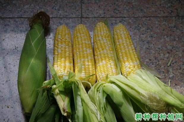 主要特征特性:该品种生育期(出苗至采收鲜穗)91.0天,比对照超甜4号短0.8天。株型半紧凑,平均株高228.4厘米,穗位高82.8厘米,双穗率0.0%,空杆率0.0%,倒伏率0.0%,倒折率0.1%。果穗长筒形,籽粒黄白色,排列整齐,穗长21.9厘米,穗粗5.4厘米,秃尖长0.3厘米,穗行数15.7行,行粒数40.1粒,单穗鲜重335.1克,净穗率75.0%,鲜千粒重473.9克,出籽率68.9%。经浙江省东阳玉米研究所鉴定,抗小斑病、中抗纹枯病、中抗南方锈病,对纹枯病非高感,符合浙江省审定抗性标准。