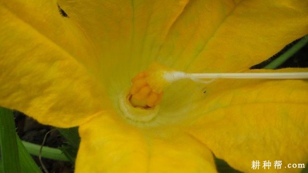 3、进行人工授粉:每天上午8~10时正值雄花开放高峰期,要摘取雄花,去其花冠,将花药轻轻投于雌花的柱头上,一朵雄花可授3朵雌花,空气湿度较大时授粉效果较好。授粉要授匀,要落到实处。为了保果,还可配合激素处理,可用20~30毫克/升2,4-D在开花的当天上午用毛笔蘸液涂于花梗或子房上,但注意不要让药液洒到茎叶上,以防产生药害。也可用40~50毫克/千克番茄灵喷洒在雌花柱头上。