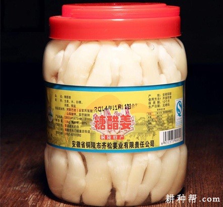 2、食用、加工型:生姜一般以嫩姜鲜食,老姜作为调料。除供蔬食以外,还可加工制成多种食品,其中以腌制品、糖渍品和酱渍品较多。作为加工原料,要求根茎纤维较少,含水量较高,质脆而肉质细嫩,颜色较淡,辛香味浓,辣味淡而不烈。适于加工用的品种如广州肉姜、浙江红爪姜、铜陵白姜、兴国生姜、福建竹姜、遵义大白姜等,用嫩姜作原料进行加工,产品的色、香、味俱佳,品质甚好。