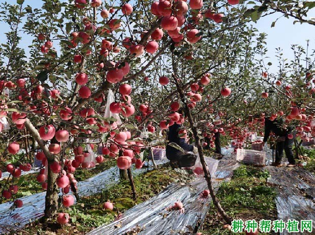 该树形主要适用于红富士苹果,既可以从小树开始培养,也可以用原树形进行改造,整形简单,成形快,修剪简便,易于掌握。这种树形所产果实果形正、个头大、色泽艳丽,全红果占85%以上,进入盛果期后平均亩产量在6500kg左右,最高可达10000kg以上。