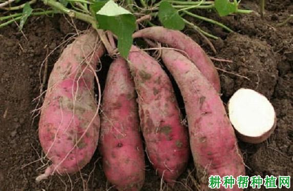 特征特性:属淀粉型品种。萌芽性较好,结薯集中整齐。叶片心形、偏小,顶叶、叶、叶柄绿色,叶脉淡紫色,叶边缘平滑、无缺刻,蔓绿色、偏细,易折断,茎叶生长势中等偏弱;薯块纺锤形,薯皮红色、光滑,薯肉白色,薯干白色、平整;薯块耐低温性好,贮藏期间温度高时容易萌芽,收获后糖化慢。区域试验结果:蔓长203厘米,分枝6.9个,大中薯率93.5%;干物率27.4%,比对照徐薯18低3.2个百分点。甜味、香味中等,不粘,纤维量少,食味与对照徐薯18相当。抗病性鉴定:高抗根腐病,感茎线虫病,高感黑斑病。