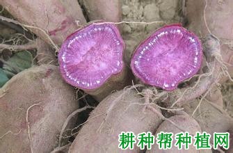 特征特性:顶叶色缘紫,叶形浅复,叶脉紫色,茎绿带紫色,株形半直立,薯块紫红皮,紫花色肉,薯形纺锤较美观,耐贮性好,萌芽性好。干物率30.62%,食味81.3分,淀粉率19.51%,维生素C含量每百克23.54毫克。中抗薯瘟病。