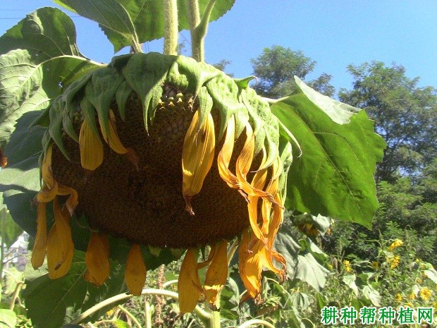 6、适时收获:当花盘背面变黄,舌状花脱落,茎秆变褐色,叶片黄绿或黄枯下垂时,及时收获。