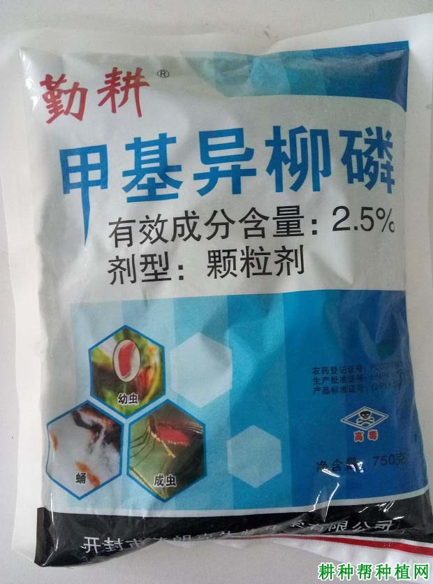 甲基异柳磷是一种广谱的杀虫、杀线虫剂,具有较强的触杀和胃毒作用,残效期长,一般4周~6周。适用于防治小麦、玉米、大豆、花生、红薯等作物的地下害虫和线虫。