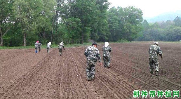 桔梗播种时,在整好的畦面上,按行距20~25厘米开播种沟,沟深1.5~2厘米,播幅宽10厘米左右,沟底整平,将催芽处理的种子1份与10份的草木灰和适量人粪水拌匀,均匀播在沟内,上盖草皮灰,以不见种子为度。最后在畦面盖草保温保湿。如土壤干旱要“坐水”播种,即开沟后先浇底水再播种盖土。播后注意浇水保持土壤湿润。每亩用种量1~ 1.5千克。秋播约2周出苗。此法根条直,分叉少,便于加工,质量优。