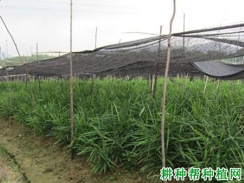 3.田间管理:当生姜出苗率达50%时,及时进行姜田遮阳。遮阳时间一般在5月上中旬至立秋后5天,可采用水泥柱、竹竿等材料搭成2米高的拱棚架,扣上遮光率为30%的遮阳网。生姜出苗后,结合浇水除草,中耕1~2次。也可用72%异丙甲草胺乳油或33%二甲戍灵乳油进行化学除草。出苗80%时浇1次水。降雨过多的地区,做好排水工作,防止田间积水。土壤湿度应保持在田间最大持水量的75%左右为宜,应及时排水与灌溉,浇水和雨后及时划锄。于姜苗高30厘米左右,并具有1~2个小分枝时,进行第1次追肥。做好排水防涝工作。三杈期前后进行第2次追肥。根茎膨大期进行第3次追肥。釆收一般在霜降前后进行,釆用秋延迟栽培的可延后1个月釆收。用于加工的嫩姜,在旺盛生长期采收。