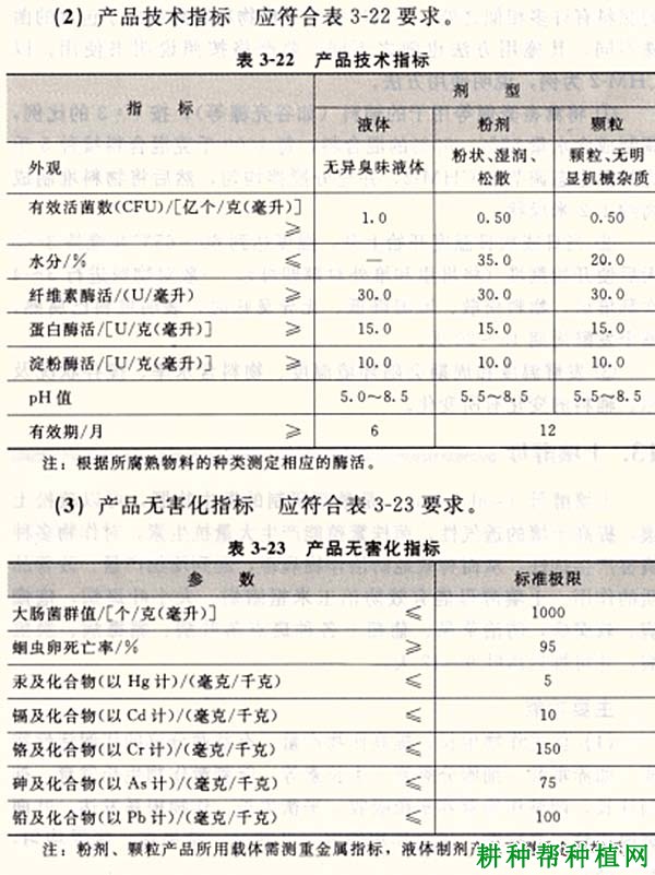 执行国家农业行业标准NY 609-2002 (适用于能分解各种有机物料的细菌、真菌、放线菌等多种微生物复合而成的生物制剂产品)。
