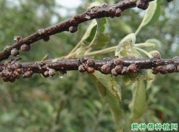 1、苹果球蚧每年发生1代,以2龄若虫多在1~2每年发生枝上及芽旁、皱缝固着越冬。
