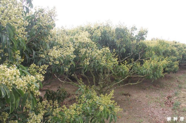 种植荔枝时在确定主栽品种后,应选择1-2 个花期相近的不同品种,约占其主栽品种10 %左右,作为授粉树。如大红袍荔枝单一种植常造成花而无实,可选较晚熟的本地荔枝优质株作授粉树。晚熟种如楠木叶与桂味花期相近可以混栽。