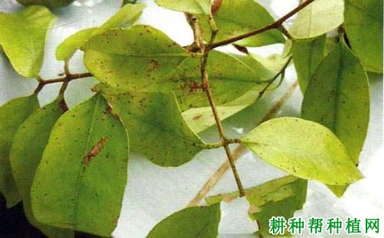 1、叶片受害症状:发病时出现黄褐色绒毛状近圆形藻斑,夏季多呈黑褐色或砖红色斑点,病斑上长有灰绿色或黄褐色毛绒状物。嫩叶发病叶片上密生褐色小斑,在叶片中脉两侧常产生梭形至短条状黑色斑,病斑中央灰白色。