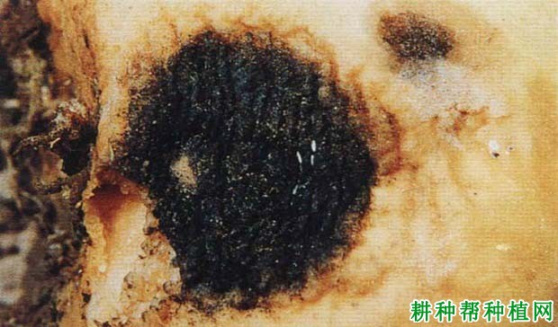 甜瓜炭腐病的病原以菌丝或菌核随病残体在土中越冬。春天分生孢子器中释放出分生孢子借风雨传播,从伤口侵入,在田间不断地进行再侵染。