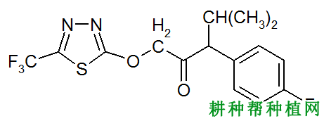 氟噻草胺(flufencet)化学名称:4′-氟-N-异丙基-2-(5-三氟甲基-1,3,4-噻二唑-2-基氧)乙酰替苯胺,CAS登录号:142459-58-3,分子式:C14H13F4N3O2S,相对分子质量:363.3,结构式如上图。