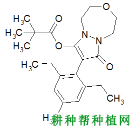 除草剂药害特点)" alt="唑啉草酯防治什么草(唑啉草酯除草剂药害特点)"> 唑啉草酯(Pinoxaden)化学名称:8-(2,6-二乙基对甲苯基)-1,2,4,5-四氢-7-氧-7H-吡唑[1,2-d][1,4,5]噁二氮杂卓-9-基-2,2-二甲基丙酸酯,CAS登录号:243973-20-8,分子式:C23H32N2O4,相对分子质量:400.5,结构式如下图。