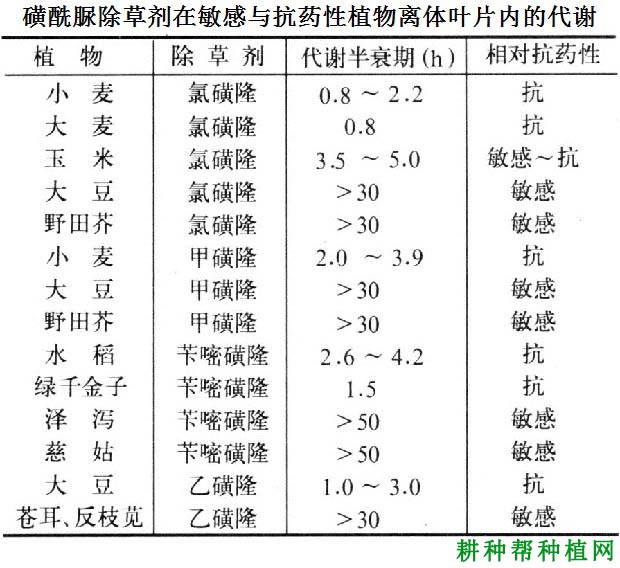 除草剂的敏感性差异很大,这种差异的原因在于它们对药剂在体内的代谢能力不同,抗药性作物的代谢作用强,药剂在体内迅速分解。此类