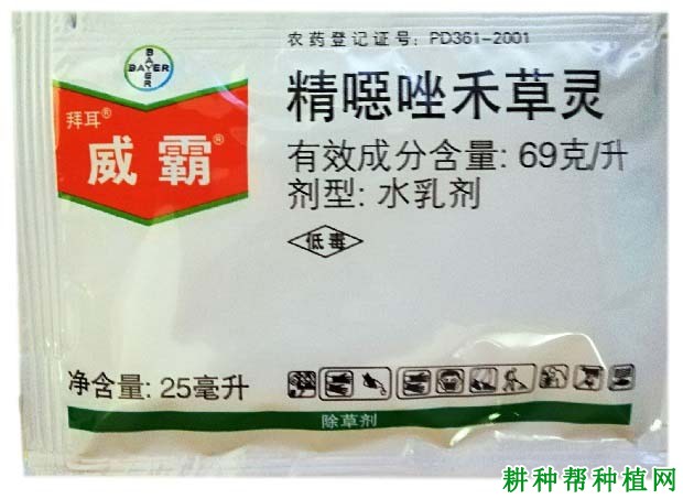 精恶唑禾草灵不加安全剂(Hoe—070542)时,则称为威霸、Whip Super。用于稻田除稗效果突出,0.3~0.4千克/公顷,可防除95%以上的稗草。但安全性差,易造成水稻受害。此外威霸也可用于大豆、油菜、土豆、向日葵、烟草、胡萝卜、茄子、大蒜等作物地,防除狗牙根、芒属及雀稗属等杂草。