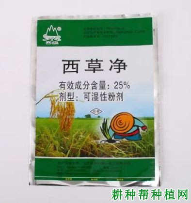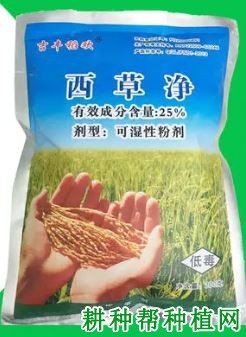 西草净主要用于水稻田防治稗草、眼子草、牛毛草、泽泻、.野慈姑、鸭舌草等;也可用于玉米、麦类、大豆、花生、棉花、草坪等防除一年生禾本科和阔叶杂草。水田每公顷0.6~0.9千克,一般用药土法撒施;旱田每公顷0.7~2.2千克,在播后苗前喷雾土壤处理。西草净与禾草特、2甲4氯等混用,可扩大杀草谱、提高药效。水稻小苗、弱苗易产生药害,应与除稗剂混用,以减少本剂用量。增加安全性;在低洼积水地,重盐碱地或强酸性土上使用,易受药害。超过30℃易使作物受害,故宜在北方地区使用。